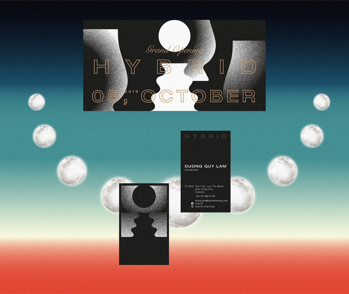 Bộ nhận diện Hybrid Bar (Nha Trang) của Lại Nguyên Tín, không gian ‘chill’ trước biển đêm